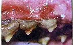 Imagine how your teeth would feel you could not brush them. The tarter would quickly build up. Decay would begin on one or more teeth. The gums would become inflamed and sore. As the decay advances it eats away at your teeth and eats down to the roots. (ouch) Long before this point, us humans would have run to the dentist because of the pain. But a Sheltie cannot tell you what hurts; so it continues to go unnoticed. Soon, the decaying tooth (or teeth) and gums will become infected. Once the infection gets a good hold in your Shelties mouth, THEN it starts to smell bad. An infected mouth can smell terrible!