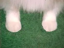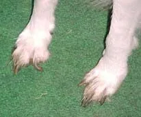 This poor dog will have foot problems if his feet are left unclipped for too long.